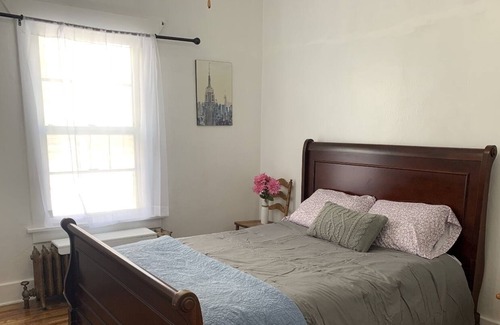 Enjoy this cute 1915 Bungalow located in a good and quiet neighborhood. The house has a lot of its original charm such as hardwood floors, built-in dining cabinet, beveled glass windows and coffered ceilings. The sun porch is a great place to enjoy a cup of coffee in the morning, or a glass of wine in the evening. Three queen-size bedrooms and a small reading nook area and a desk for work or studying. There is also a small fenced yard and a pet door for your house-trained, furry friends.