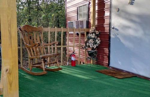 Located in Pensacola, this villa is a dream, a piece of country in the middle of town. At the end of the road and backed by a peaceful forest, the perfect quiet get-away form the Hussle and Bustle of it all. There's a mini kitchen where you can cook a simple meal or just warm something the microwave. Enjoy a cup of coffee on us. Relax watching tv or sitting on the porch. 15 min. drive from the beach and shopping is close. We speak English and Spanish. With a cozy bedroom, WiFi, AC, and heating, guests will feel right at home. The bathroom is equipped with all the essentials you need. Feel free to reach out to us during your stay - we're happy to suggest local spots to check out. The place is shaded and there are times of the year when acorns fall on the metal roof.