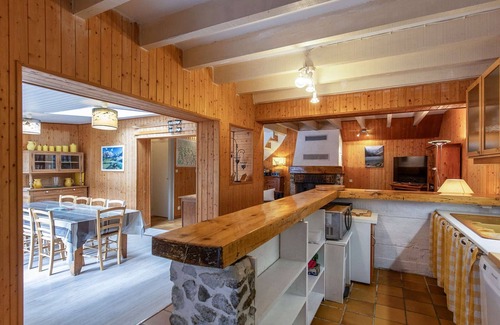 Well-equipped kitchen with large bar and worktop: oven, hob, dishwasher, microwave, filter and capsule coffee maker, toaster, kettle, raclette grill.