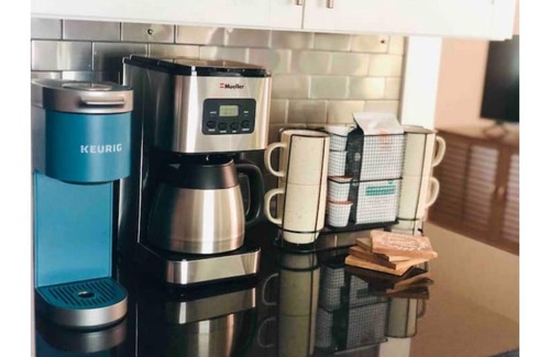 You will find yourself surrounded by gourmet restaurants as well as the convenience of fast food and pizza. If you wish to cook or bake, the kitchen is fully equipped with oven, stove, microwave, blender, family sized slow cooker, rice cooker, hand held mixer, electrical kettle, two-slice toaster as well as pans and pots, a full set of prep bowels, measuring cups and spoons, baking sheets and pans. It is also stocked with salt and pepper, cooking oil, even flour and sugar! Well, you do need to bring your own eggs. : P