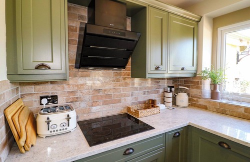Cherry Tree Farm consists of a kitchen with electric oven, induction hob, microwave, fridge/freezer, and dishwasher, a dining room with dining for ten people, TV, and doors out to the garden, a sitting room with electric fire,and Smart TV, a games room with air hockey, pool, books, study desk, and woodburning stove, and a cloakroom. The bedrooms are a super-king-size with en-suite wetroom, king-size, ground-floor king-size, double, and twin. A shower room with walk-in shower, basin, and WC. WiFi, fuel, power, bed linen, and towels are included in the rent. There is an enclosed rear garden with lawn, patio, furniture, hot tub, Smart TV, and off-road parking for six cars, plus EV charging available. Highchair, travel cot, and stairgate available. Sorry, no pets and no smoking. Note: A few steps up to the property. Note: The lawn is raised in the garden. The bar and fridge will not be stocked, please provide your own. Note the Cheery Tree does not accept stag, hen or similar parties. Please note this is strictly a family orientated vacation holiday home Minimum Age Requirement: For adult-only group bookings, all guests must be 25 years or older.