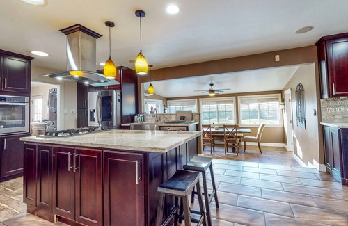 Nestled amongst 13.8 acres of beautiful cheery trees, this sprawling farm offers a vacation experience unlike any other! In the California countryside, find yourself wining and dining at nearby vineyards, taking in picturesque views, and for fun at home, dipping into the retreat's private pool, or indulging in some playful competition on the basketball court.