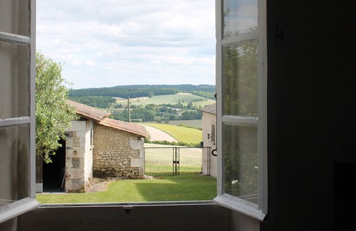 Maison Primevere, chez Gigon, is a beautiful 16th century farmhouse with original features throughout. The house is set in enclosed gardens, front and rear, with spectacular views of the Charente countryside and a private heated and alarmed 12m x 5m swimming pool. There are 2 double bedrooms upstairs both with ensuites and a downstairs childrens bedroom with bunk beds and double bed. Travel cot also available. The Farmhouse has a self contained gite at one end of the house, ideal for Grandparents! The Farmhouse can sleep up to 8 people, ideally 4 adults plus children. The Gite, can sleep two. (This is not rented out separately). Games room with Table Tennis, Wii & lots of board games. Wifi available. The house is well equipped to meet all family needs for a fabulous holiday. Situated within a 10 minute walk to the local village of Montboyer with it's Award winning Artisan Boulangerie and Restaurant with a lively atmosphere and entertainment through the summer. Boulangerie Painpoline has been mentioned in the Michelin Food & Travel Guide this year! Within a 10 minute drive is beautiful Aubeterre Sur Dronne, one of the 100 most beautiful villages in France with it's subterranean church, superb restaurants, river beach and canoeing. Chalais is also very nearby with it's weekly market and amenities, plus tennis, golf, canoeing, zip wire adventures and Chateaux to visit. The beautiful walled city of Angouleme is 30 minute drive and Bordeaux region with it's superb wineries just an hour's drive away as well as the Atlantic coast and beautiful seaside resort of Royan!