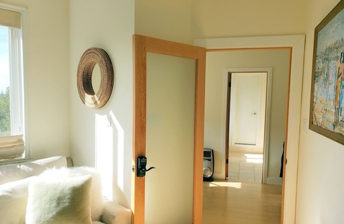 Enjoy your privacy in a spacious and elegant 3 storey apartment, the perfect place for a relaxing stay for 5 guests. Built with privacy in mind, you can stay comfortably, still enjoy the view of the San Francisco Bay Bridge and the surrounding garden through the wide panoramic windows. Spacious living rooms, dining areas, a working space and a Jacuzzi tub will make your stay unforgettable. If you fancy wooded tranquility, spend some time on one of the beautiful terraces, overlooking the Bay and surrounding garden areas.