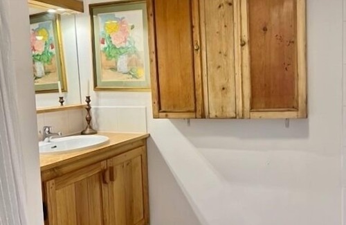Additionally, the bedroom above the kitchen has a small en suite bathroom with a toilet, washbasin and shower.