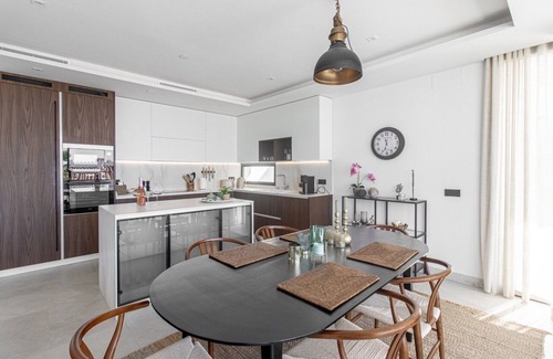 Fully equipped kitchen with high-end appliances and luxury finishes.