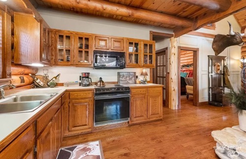 Close your eyes and picture a quintessential ranch cabin. Now spruce it up with charming Western decor. Feel the warmth of a stone fireplace. Place it on a cliff overlooking an Ozark valley. Watch deer and wild turkey from the wraparound porch. Breathe in the clean, crisp air and relax. You’ve found your place.