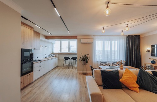Located in Chișinău, enjoy what this 2-bedroom apartment has to offer. This brilliant and serene space features 2 full beds, a spacious living room, sauna, a cozy bathroom with a bathtub, and essential amenities like WiFi, AC, and a washing machine. Relax in this fantastic retreat after a day of exploring the city. Feel free to reach out to us during your stay - we're happy to suggest local spots to check out.