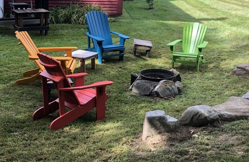 The outdoor shower is available April-October. It’s a wonderful treat to shower under the stars. The backyard fire pit is another gathering space to enjoy year round at the end of a fun filled day outdoors.