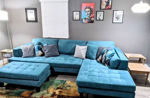 All beds have memory foam hybrid mattresses with super soft hypoallergenic bedding. Both bedrooms have room darkening blackout curtains, large closets the length of each bedroom with ample storage space including hangers and hanging organizers, ottoman with storage, extra pillows and blankets, and table or bedside lamps with outlets and usb ports for easy phone charging. Second bedroom has two twin beds which can be converted into a king size bed upon request. Small office has a fold away computer desk for remote work or studying and large closet for additional storage. Air purifiers with HEPA filter for an allergy friendly space and white noise for light sleepers. Central air conditioning and heat included.