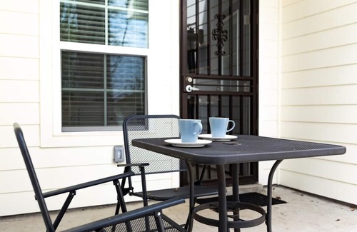 This apartment has an outside door for access (from the driveway). Feel free to spend time on our patio & backyard (front porch is inaccessible). Parking is available in the driveway next to the entrance.