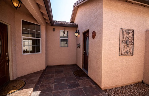 Clean, comfortable home in Gold Canyon close to Gold Canyon Golf Resort. Two bedroom/two bathroom main house, with 1 bedroom/bathroom Casita with separate entrance. Spacious master bedroom with beautiful views, king bed, and large closet. Second bedroom inside the main house has two double beds, perfect for families traveling with children. The third bedroom has a queen bed and its own entrance for a little quiet separation. This house is fully equipped with everything you need!! The manager of this property is a licensed Real Estate Agent in the State of Arizona.