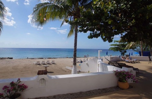 You will be ON THE BEACH!!! Only sand between you and the water! No Stairs to carrying your luggage and groceries up. No stairs between you and your next cold drink. Just 3 miles south of town. Experience some of the best snorkeling on the island just steps from your door.