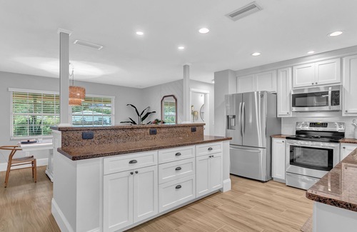 Welcome to our fully renovated "Coastal x Boho" escape. We've curated this space with luxe finishes & plush linens. Centrally located in the highly sought after destination of Vero Beach FL, full relaxation awaits as you lounge around the heated salt water pool hearing cardinals & blue jays frolicking around the private backyard. The nearest beach is 10 minutes away. Experience clear blue waves & exotic wildlife from sea turtles, dolphins & manatees.