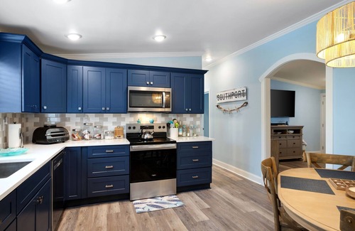 Welcome to Mainsail Shenanigans—a freshly renovated beach retreat tucked in a peaceful Southport neighborhood! Most everything here is brand new, from the furniture and bedding to the fully stocked kitchen and sparkling clean bathrooms.