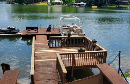 Our home is only a few feet from the water's edge. With several ways to easily access the lake. One way offers easy access for the kids, by taking a series of steps into the lake. Another way is to take a dive off the floating dock, or just enjoy the lake on the stable dock with the most fantastic view of the lake.