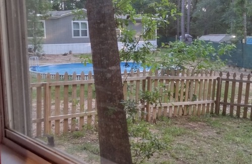 The cottage is 320 sq ft. It is a 1 bedroom, bathroom, and full kitchen with pots, pans, dishes, utensils, just bring food and drinks. It is fenced in for your child or pet and has a doggy door. There is a Pond and fountain with catch and release fishing. We have a fenced playground for kids and During May to Oct there is a 24' round pool. It sits on a scenic acre lot with a country setting. It can sleep 2 Adults and 2 Children maybe 1 baby. The bedroom has a Bunk Bed with full bed on bottom and twin on top. In the front room the couch and ottoman fit together to make 1 bed and extra bedding is provided. Big discounts on weekly rentals.