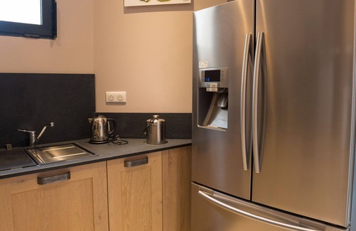 - an independent kitchen with coffee maker, kettle, toaster, microwave, oven, dishwasher, induction hob 4 burners and an American fridge,