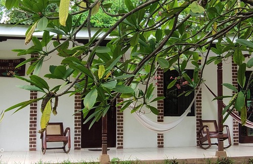 Flor de Sacuanjoche is a small but pleasant house with 2 bedrooms, beds for a maximum of 6 guests, air conditioning, located in a large garden just 4 kilometers from the city of Chinandega, 5 minutes by vehicle. Ideal house for family outings or business trips for short and long stays. House built on a 14,000 square meter property with 24-hour security, surrounded by lots of nature, fruit trees and many birds. Prices are quoted by number of guests, house is exclusive for the number of guests who reserve. Children must be included to calculate charge.