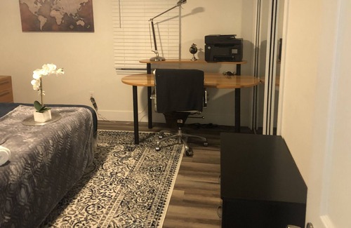 This comfortable and beautiful house is located in a quiet residential neighborhood on the outskirts of Riverside and is central for visiting many socal attractions.