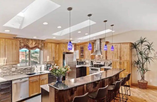 As you enter this spacious and serene 2500 sq ft home, you are greeted with an enormous dining and kitchen area. Vaulted ceilings and skylights compliment this house with an abundance of sunshine. A 12-foot island is the epicenter of socializing in this chef's dream-kitchen. Perfect for families to share a meal together after exploring Colorful Colorado.