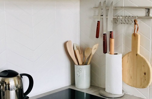 - A fitted kitchen with combined oven, dishwasher, ceramic hob, extractor hood, kettle, toaster, French press, filter coffee maker, teapots, raclette / grill appliance, new cookware and dishes