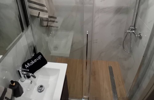 A stone staircase leads you to the first floor of the house. The property was built in 2024 and has modern inside decoration and beautiful stonework outside. The house is spacious (100 sq m inside), comfortable, and fully equipped. The windows have nets, so guests don’t have to worry about mosquitoes. By opening the windows, a lovely sea breeze is felt throughout the rooms. The house has a relaxing atmosphere; it’s peaceful and bright.