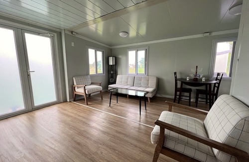 Come relax at this unique and modern 20x20 sq. ft expandable container home! This is a 2 bedroom, 1 bathroom unit resting on a beautiful 1500 sq. meter lot. There are fruit trees, flowers, vegetable plants, and the lot also includes the use of patio furniture, hammocks, BBQ grill, fire pit and even a washer machine (additional cost for laundry). The units are fully equipped with everything a guest should need including towels and dressings for the beds.