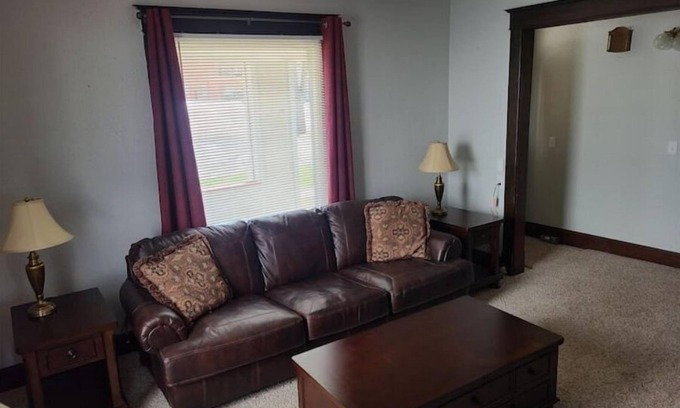 Cozy main level unit located close to the Historic Carthage Jail. This is a one bedroom unit with a queen bed, desk and office chair and sitting area, living room with couch and tv and eat in kitchen. There is shared laundry in the basement available and off-street parking. There are restaurants and a grocery store within walking distance. You are a short distance from Nauvoo, Keokuk, Quincy and Macomb.