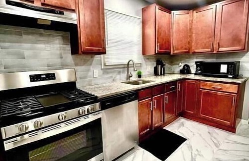 Stylish 3-bedroom, 2-bathroom home in a peaceful, family-friendly Montclair neighborhood. Features a bright, tastefully furnished living area, fully equipped modern kitchen, and cozy bedrooms designed for comfort. Minutes from downtown Montclair’s boutiques, cafes, and parks, with quick public transit to NYC. Perfect for families, groups, or business travelers seeking comfort, convenience, and a quiet, stylish retreat.
