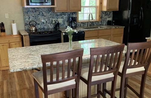 The home has forced air heating and central air conditioning. There are multiple televisions with Roku devices that allow you to stream your favorite shows, and of course, there is high speed WiFi Internet. There are also two kitchens - one upstairs and one downstairs, as well as a washer and dryer for our guests use.