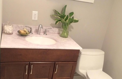 Cute Farm house right of 23A. It has been featured and renovated in 2016 on HGTV's show "Vacation House for Free". The charm of a old country house meet up to date design and features. Enjoy the view from the large deck, grilling 'n' chilling, or relax in the sauna. Minutes to shop and dine in Tannersville and to Hunter Mountain's slopes and Festivals. 1 bedroom with queen size bed, 2 bedrooms with full beds, 1 pullout sofa in the basement. Dining room easily accommodates 8 guests.