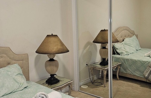 You'll fall in love with this charming 2-bedroom condo townhouse, complete with two complimentary parking spots right on-site. Conveniently located near the highway, it offers easy access to everything you need. Enjoy the entire house to yourself, including a refreshing balcony where you can take in the fresh air. Unwind with the smart TV, free Wi-Fi, and a Netflix subscription. For your convenience, there's an in-house washer and dryer, and the fully equipped kitchen is ready for all your culinary adventures.
