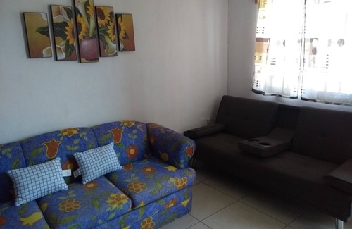 🏠 decorada sencillamente, muy confortable con dos recamaras, un baño completo, patio de servicio, comedor, cocina totalmente equipada con todo lo necesario para preparar comidas sencillas, dos sofá cama en el área de la sala (uno individual y uno matrimonial) y una colchoneta matrimonial, smart TV, cerca de tiendas de conveniencia, farmacia, fácil acceso y centros comerciales cerca. Estacionamiento para 2 autos