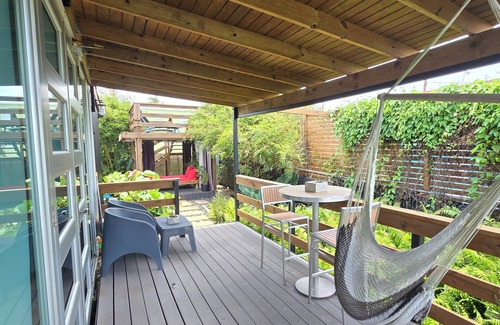 Enjoy a unique experience in this modern short-term rental container home, located near the best beaches in Arecibo. Ideal for those looking for a quiet stay close to the sea, this property offers a spectacular view of the Atlantic Ocean from its terrace. The container is fully equipped with a functional kitchen, private bathroom, and an outdoor half bath for convenience. Relax in the heated pool, perfect for any time of the year, or lie by the red bed, creating a cozy and stylish atmosphere. Whether you're looking to relax, enjoy the beach, or explore the area, this is the perfect place for your getaway.
