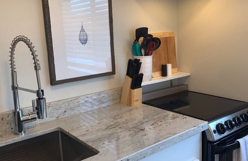 Newly renovated and stylish one bedroom, one bathroom studio condo for 2 with full kitchen, full bathroom, and full laundry. Located in the gated community of Oak Shores Condominiums, you are central to all things in Biloxi. Enjoy cooking in the gourmet stainless steel kitchen with new granite or lounge in the luxurious linens on the queen bed and watch the 50-inch Smart TV. There are two beautiful pools on site, a workout facility, and a playground. You are just steps from the beach and can walk there in five minutes. Feel free to use our beach chairs and beach towels we have stocked in the condo. Lovely gated community that is within walking distance to so many fun activities, restaurants, and bars. You are less than 3 miles from the city’s casinos and coliseum. You will not find a more beautiful space at a better price. Please note there are cameras that surveil the exterior of the condo only. No cameras are inside the home.