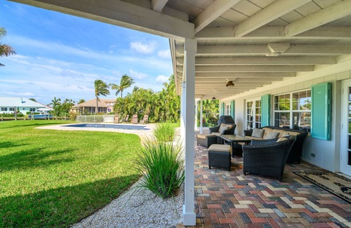 The interior is designed in a casual beach style with a love of ocean hues and sun-bleached white, incorporating natural materials and fabrics, and a celebration of natural light. This Contemporary Coastal home incorporates clean lines with a relaxing casual design. Enjoy watching dolphins & manatees from your own private oasis.
