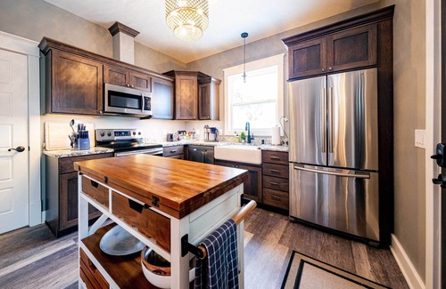 This quaint bungalow has been recently updated with high-end modern appliances, homey furnishings, and chic cowboy-themed decor - perfect for an adventurous stay in the Cowboy State! The 2-bedroom, 1-bath vacation rental house sits just off of historic Main Street, allowing walking distance to the vibrant downtown area lined with lively bars, restaurants, and shops. When you're not soaking up the charm of this small Western town, explore hiking trails in the beautiful Bighorn National Forest.