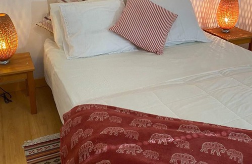 Bedroom 1 - large room with a super king size bed (180 cm) and large ensuite bathroom with bath/shower, hand basin & WC (which can be accessed from living area if wished).