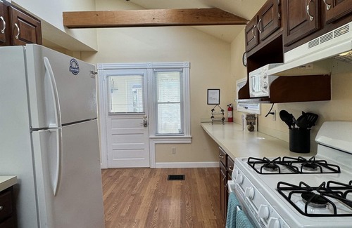 Cooperstown Cottage is a stand alone house with a private driveway and off the street parking. The main entrance leads you into the kitchen and the 1st floor bathroom with laundry is located just to the right. Very convenient from the pool area. There is formal dining room with original features still intact such as tin ceilings, built in hutch and beautiful hardwood floors. Leading from the dining room into the large living room with a large smart TV, books and board games to keep your group entertained. There is a door leading outside to the sweet little side covered porch with seating.
