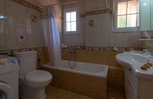 Simply yet tastefully decorated with warm tones and tiled flooring, Villa Dinos features a fireplace and satellite TV with Cd/DVD player in the living room. Bedrooms are fitted with wrought-iron beds. The fully equipped kitchen comes with stove, fridge and microwave. A dining table and a washing machine are also provided.
