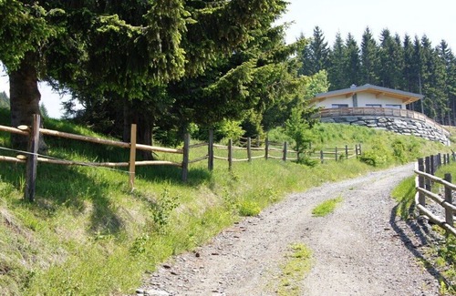 Detached holiday home at 1200 meters, surrounded by forests and flowering meadows on a sunny hillside, with views of the surrounding mountain ranges. The open design with large windows creates a light-filled atmosphere, while the combination of wooden ceilings and granite flooring with underfloor heating creates a cozy, warm atmosphere. The additional fireplace lets cold winter evenings melt away with a glass of wine. This modern and well-equipped holiday home, with its attention to detail, offers a total living space of 98m². On the semi-circular wooden terrace, you can enjoy the fresh air, the scent of blooming meadows, and the tranquility of the rising sun while having breakfast.