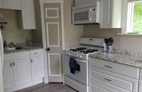 Our 2 bedroom guest suite is located in a historic complex built in the 1880's to house railroad workers. The building complex sits on 6 acres of land along a hillside and consists of 4 private short term guest homes. Property manager lives at adjoining building, but each suite provides private entry access and use of the full property common areas. Plenty of trees and grassy areas to enjoy as well as a short walking trail down to the Connecticut River. The unit is located on the first floor with a small front and back porch. We have updated to the suite with modern amenities and stocked it for your comfort. A cozy couch in the living room converts to a full size bed for an extra guest and gives you plenty of space to relax and watch some TV. Small dining room for 4 and kitchen with oven, microwave, refrigerator, Keurig coffee maker, toaster oven and fully stocked with dishware and bakeware. The master bedroom features a queen size bed with memory foam mattress and 6 storage drawers. The second bedroom has a twin over full bunk bed perfect for kids or adults. The small bathroom includes a vintage clawfoot tub with shower combo.