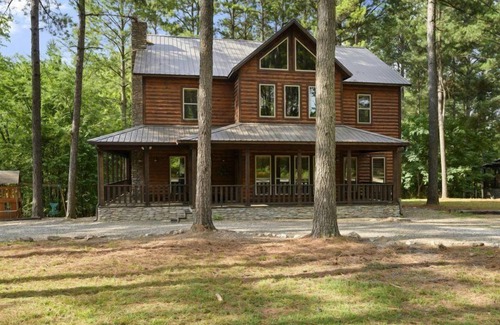 The Cornerstone Lodge is a beautiful Beavers Bend luxury cabin perfect for family or friends getaway! This two-story, log sided cabin hosts 4 King Bedrooms, 2 1/2 Baths with luxury furnishings, 2 air mattresses in the upstairs hallway closet, leather furniture, and stainless steel appliances. The open living plan allows you to prepare meals and not miss out on the gathering and fun! 1 King master downstairs, the remaining 3 Kings upstairs, and a game area in the loft where you can enjoy a game of pool while looking out over the small creek and forest. There are 2 air mattresses in the upstairs hallway closet for additional sleeping of up to 4 guests. Step out onto your covered deck from downstairs and sit in front of the fireplace or relax in the bubbly hot tub while gazing out at the star-filled nights. You can also enjoy some s'mores at your fire pit creekside! Cornerstone Lodge is in the Timber Creek South area, just minutes from the Cedar Creek Golf Course, the Broken Bow Lake, and Beavers Bend State Park. Cornerstone Lodge is also within walking distance to the Hochatown Distilling Co Mountain Fork Brewery, and Sweet Melissa's Coffee and Ice Cream.