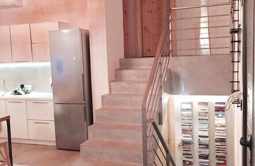 Each floor has 2 bedrooms that both share a bathroom with shower. In the first floor, one bedroom has a queen size double bed and offers a stunning sea view and the other bedroom has a king size double bed that can easily be transformed in two separate beds. In the lower floor both bedrooms have a king size double bed that can easily be transformed in two separate beds.