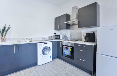 This compact and cosy 1 bedroom apartment in Dudley features stylish furnishings and modern appliances and is perfect for couples or single travellers. There's an open plan living space and fully equipped kitchen plus a modern bathroom and double bedroom. You will find a number of aminities within walking distance including restaurants, pubs, shopping centres, a gym and a supermarket just across the road.