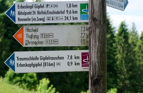 Resort "Ferienpark Himmelberg". Above Thalfang, on the outskirts, 1 km from the centre. In the complex: central heating system. Central parking spaces. Shop 1.3 km, supermarket 1.3 km, restaurant 1.5 km, bar 1.4 km, bakery 1.3 km, café 1.3 km, bus stop "Thalfang" 900 m, outdoor swimming pool 20 km, indoor swimming pool 600 m. Golf course 25 km, tennis 100 m, walking paths from the house 300 m, chair lift 10 km, slopes 10 km, cross country ski track 10 km, children's playground 1.1 km. Nearby attractions: Schmuck- und Mineralienhaus Kirschweiler 22 km, Besucherbergwerk Fell 25 km, Deutsches Edelsteinmuseum 30 km, Römerstadt Trier 35 km. Well-known ski regions can easily be reached: Erbeskopf 10 km. Please note: car recommended. Loading and unloading of baggage is possible at the holiday house. The holiday park, overlooking the “Erbeskopf”, consists of two-storey block-style houses, semi-detached houses, bungalows and country houses (all with lawns and play areas).