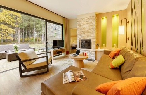 Park Le Bois aux Daims is conveniently located near several attractions in the Raslay, France area. The Château de La Mothe Chandeniers is just 5 km away, while the Abbaye de Fontevraud is 15 km from the resort. The Bioparc de Doué-la Fontaine is approximately 30 km away, and the famous Futuroscope is within a 65 km driving distance. Please note that the resort is a car-free holiday complex, offering a peaceful and enjoyable vacation experience.