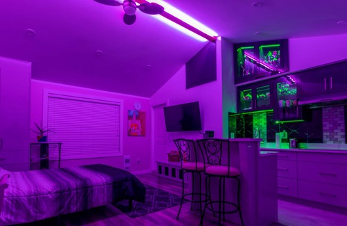 Welcome to our cozy bachelor suite, perfect for solo travelers or couples. Enjoy a comfortable bed, private bathroom, and basic kitchen amenities. Located in a safe and convenient neighborhood with easy access to public transit and local attractions. Equipped with LED lights to set the mood. Book now for a relaxing stay in Abbotsford