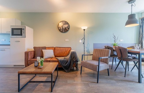 Beautifully located in the Veluwe region, this sustainable accommodation comfortably accommodates families with children. Enjoy the cosy décor and views of the petting zoo from your terrace, where children can help feed the animals. They can play freely in the playground on the park while you enjoy a drink of your choice on the park terrace, at the front of the property. You might even spot a deer in the distance!